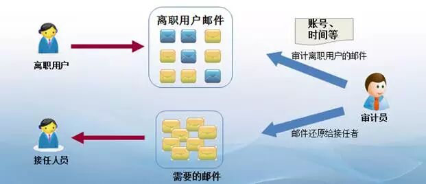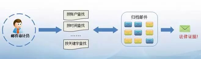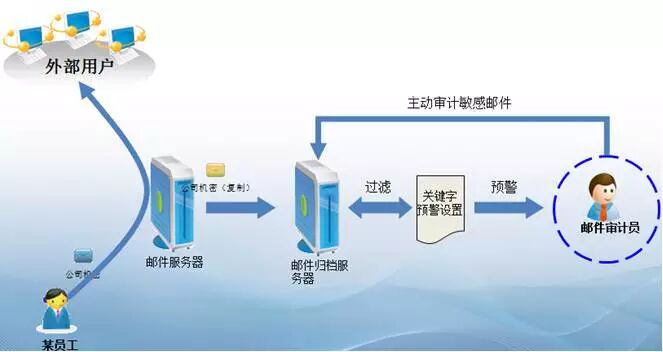 如公司某员工发现近期部门很多内部资料莫名其妙的外泄,可通过邮件审计员查资料可快速的找出元凶,如图流程演示: