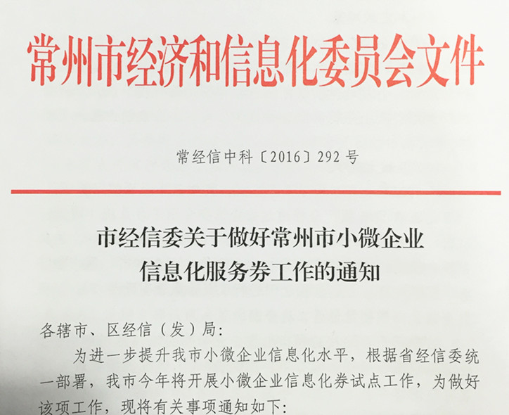 《市经信委关于做好常州市小微企业信息化服务券工作的通知》
