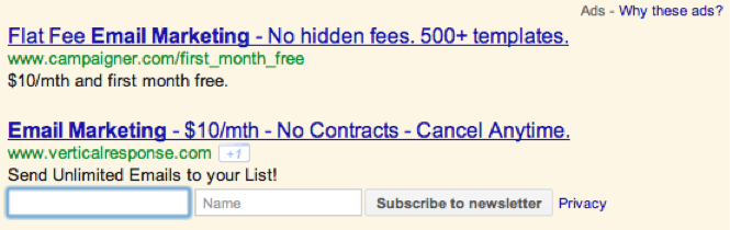 直接加入信息框的模式,让用户少点击了一次Request Email就可以直接订阅或者要求电话回访了,这样肯定会大幅度增加点击率,如此的广告样式,你想不注意都难,至少我会尝试输入我的信息。
