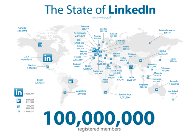 要看适不适合外贸B2B行业的朋友来推广,首先要看看Linkedin用户的分布和类型,整理了一些数据来简单了解下Linkedin的状况