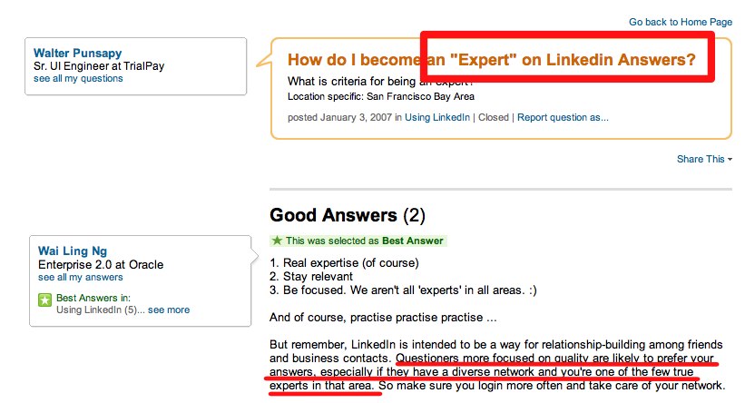 - 在Linkedin问答区回答问题质量贵在精辟,如果被选中最佳答案,是有机会被贴上‘Expert’的标签!