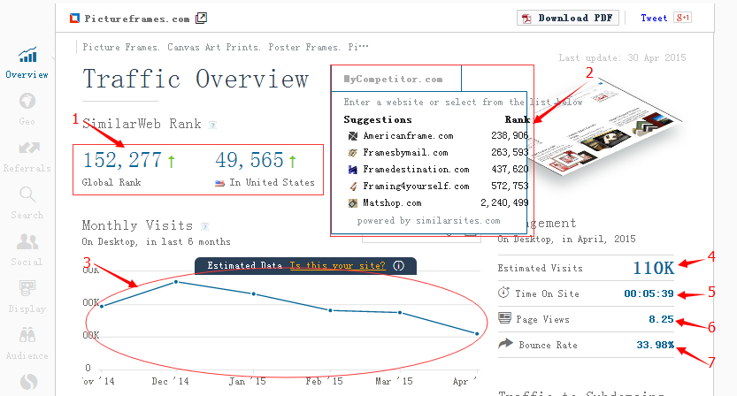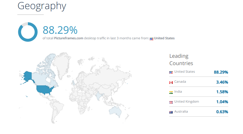 如何选择关键词? 在这里我建议没必要太过纠结,确定你的主关键词,这与你的商业定位有关,通过keywords planner 采集好到一个表格中,细分,筛选。下面我们使用一个工具 similarweb.com archive.org(需翻墙使用)来分析我的竞争对手 pictureframes.com(其实他并不是,只是和我做同一个种产品,不过他做的是B2C)