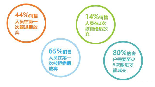 难点:销售人员通常在第一次被拒绝之后就放弃了该线索。