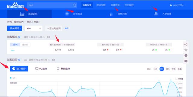 在做一些关键词分析的时候我们会经常用到百度指数来分析,另外从百度指数分析还可以了解PC端和移动端对同一个关键词不同的搜索趋势,便于我们针对不同的关键词对不同的设备进行优化。还有一个作用就是可以利用百度指数来挖掘长尾关键词。总之百度指数对挂见此分析提供重要的参考依据。