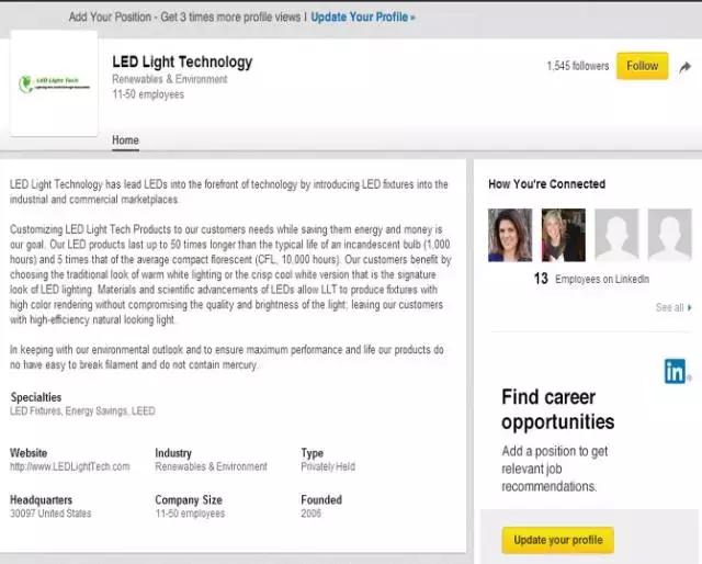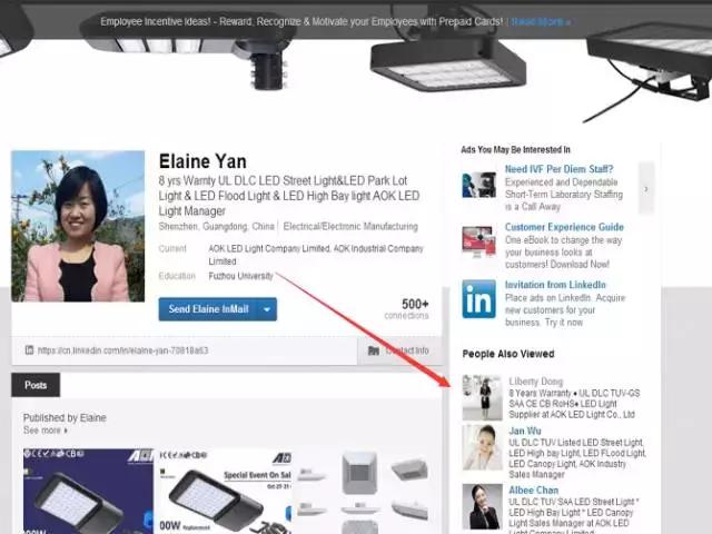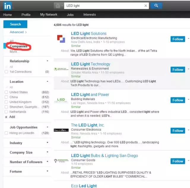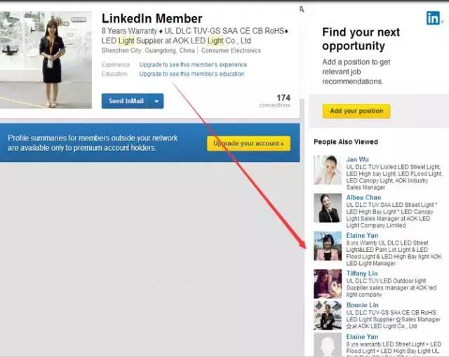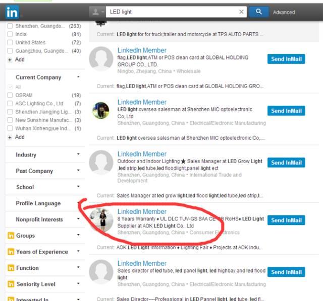 如果你的目标客户是领英会员,怎么要如何深挖他的个人信息来加他为好友呢?我们以LED light为例: