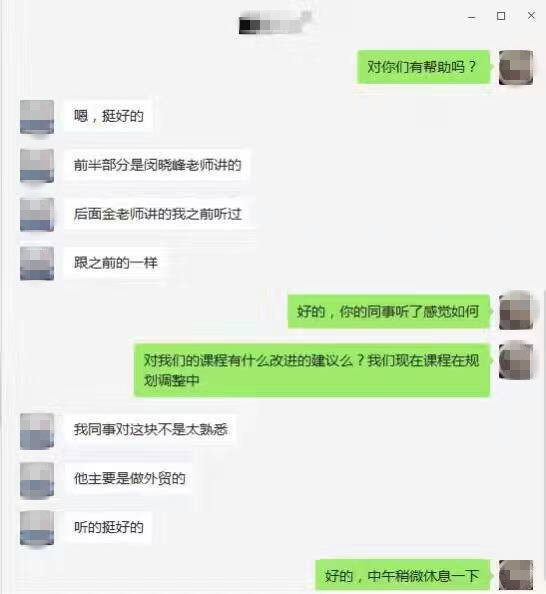 ▲课程中,我们的服务团队也在持续跟进学员们的学习感受,第一时间获取课程反馈