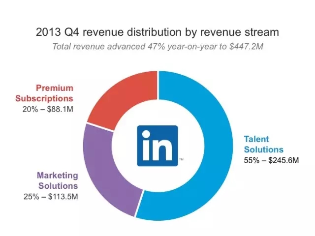 (图1 2013年LinkedIn公司Q4营收中市场营销占到25%)