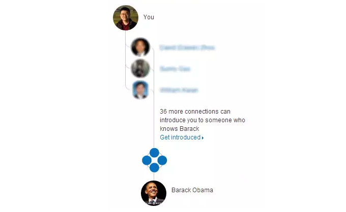 甚至,如果你想卖给奥巴马一个圆珠笔,可能都能找到给你们牵线搭桥的人。从LinkedIn中,你甚至可以找到某个人脉关系,能帮助你在美国总统之间建立某种联系。