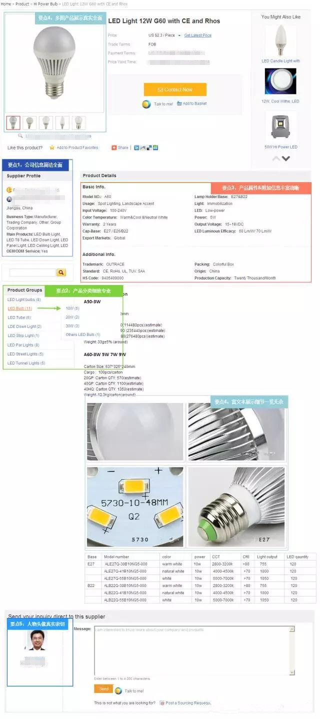 为了帮助供应商更有效地展示产品信息,抓住“挑剔、敏锐”的专业买家的眼球,让我们一起来关注一下:海外买家眼中专业的网络信息展示(如下图),究竟蕴藏着怎样的玄机?