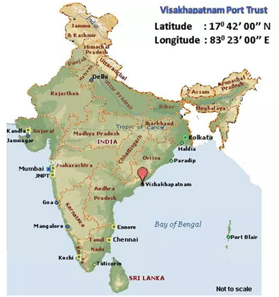 维沙卡帕特南港在安得拉邦,濒临孟加拉(BENGAL)湾的西侧,是印度最大的铁矿石输出港。所属港务局Visakhapatnam Port Trust (http://www.vizagport.com)。