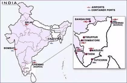 据维基百科介绍,位于印度东部港口金奈港,现已经发展成为集集装箱、滚装车辆、工程货物等多种操作能力的最大港口,其主要出口铁矿石、皮革、棉纺织品等,主要进口小麦、原棉、机械以及钢铁、矿石等。在2014-2015年,金奈港集装箱的吞吐量达到155万TEU。