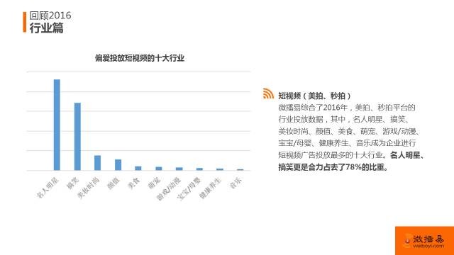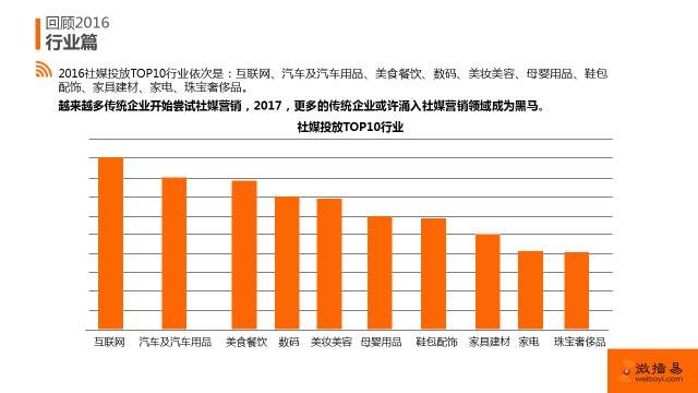 2016年,以直播、短视频为主的社交视频集中爆发,社交视频亦成为企业市场营销的新生力量。在这样的大背景下,社媒营销平台微播易联合中国商务广告协会数字营销研究中心,针对过去一年的社媒投放数据对2016年社媒广告投放、2017年社媒营销趋势走向,联合发布了2017社媒营销研究报告。