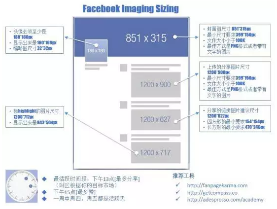 接下来,我们一起来学习一下海外各大主流社交媒体的最佳发布动态时间及相应尺寸、工具。