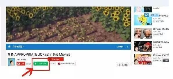 现在访问youtube,打开一个我们要下载的视频,当视频开始播放时下面就会出现一个绿色下的download按钮。