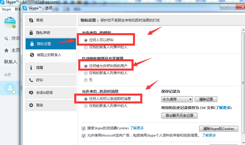 二.不加好友,直接“语音、视频聊天”或“留言”,必须设置隐私项目