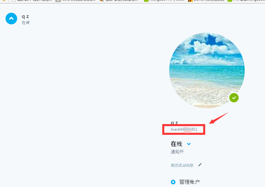 ▼获取 “skype用户名”,用户名是“live:644540451”,这才是正确的“skype”用户名: