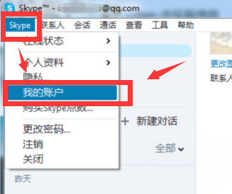 ▼由电脑客户端登录,选择Skype,我的账户,点击: