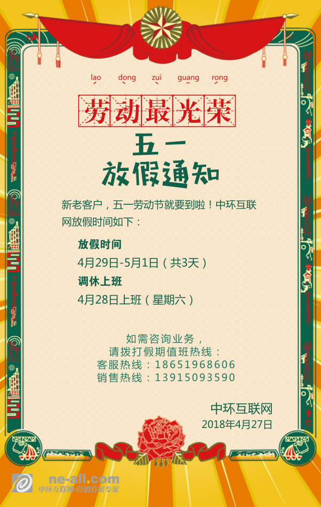 中环互联网五一放假通知